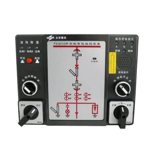 FK3020 开关柜智能操控装置功能强大,用于3-35KV户外开关柜,取代现有的一次回路模拟图、温湿度控制器、高压带电闭锁装置等,有全功能语音防误提示和告警、配有储能旋钮、远方就地、分合闸转换开关、照明开关、LED显示温湿度数据。具有RS485通讯接口。